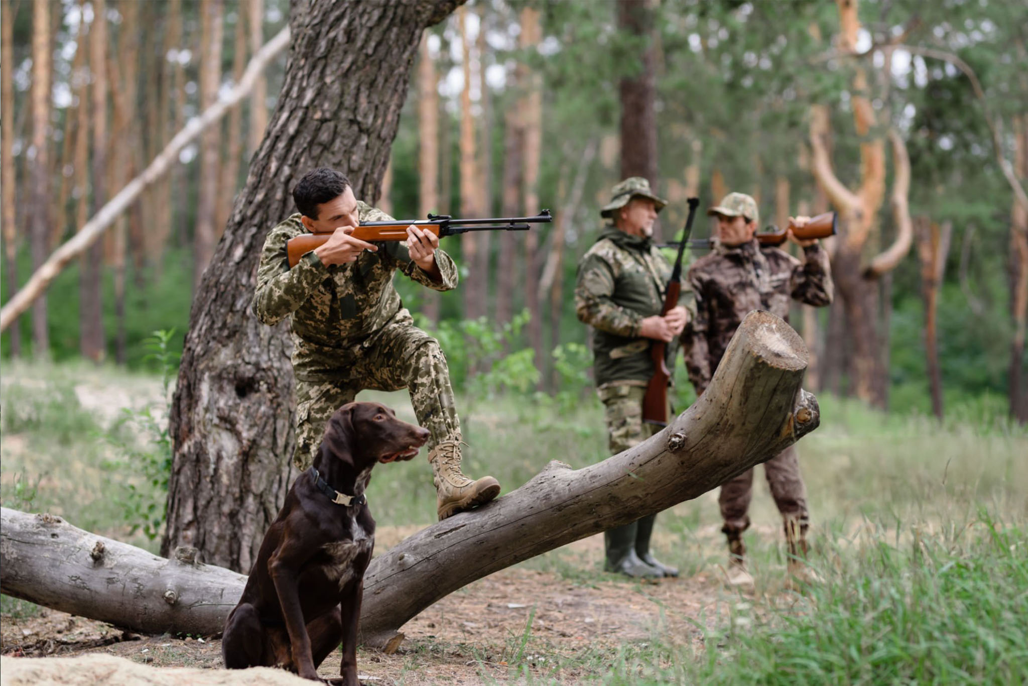 - Deer hunters moving through brush or wetlands in early-season hunts